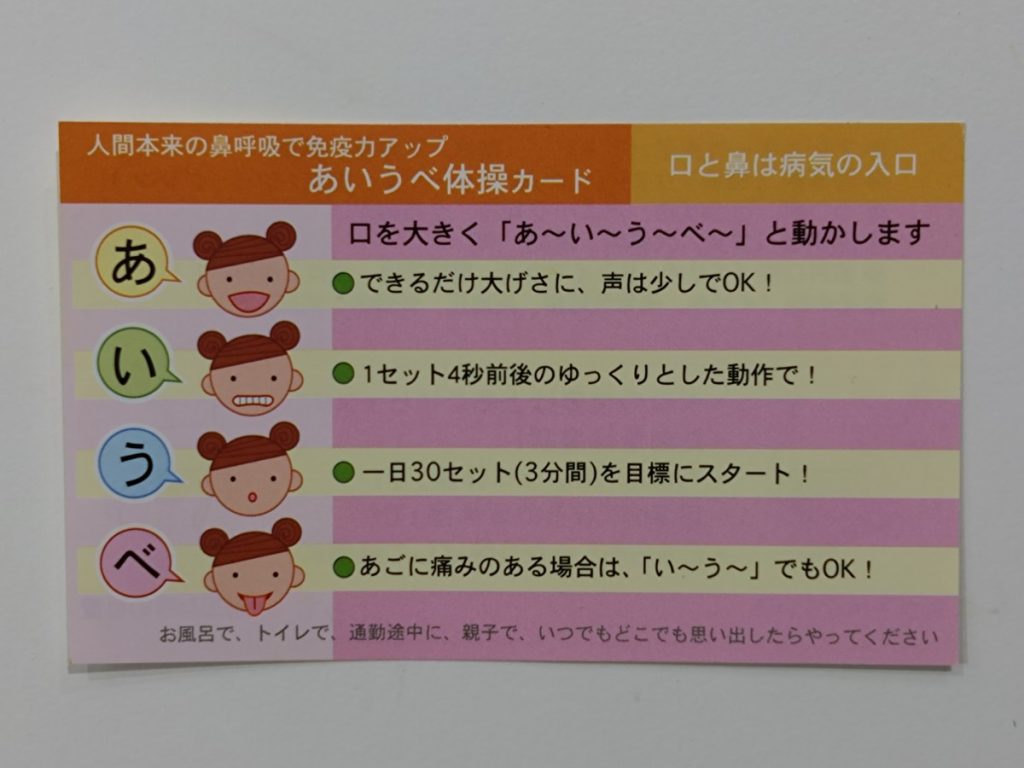 誰でも簡単にできる【あいうべ体操】を是非ご家族でルーティンの1つにしてみられてはいかがでしょうか。